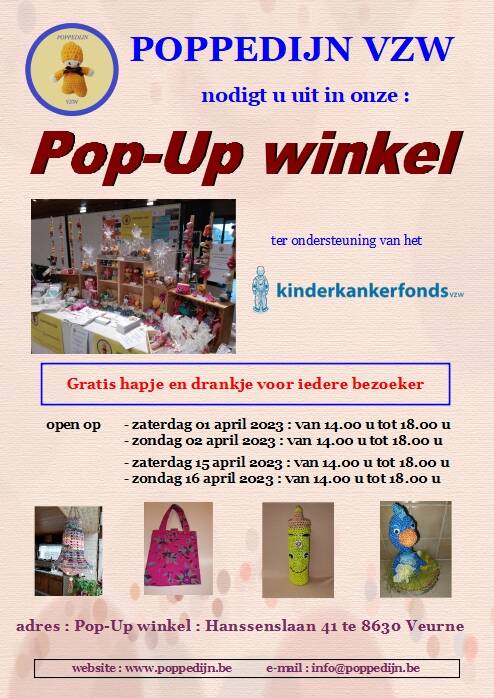 Foto's pop-up winkel in Veurne op 01-02-15-16 april 2023