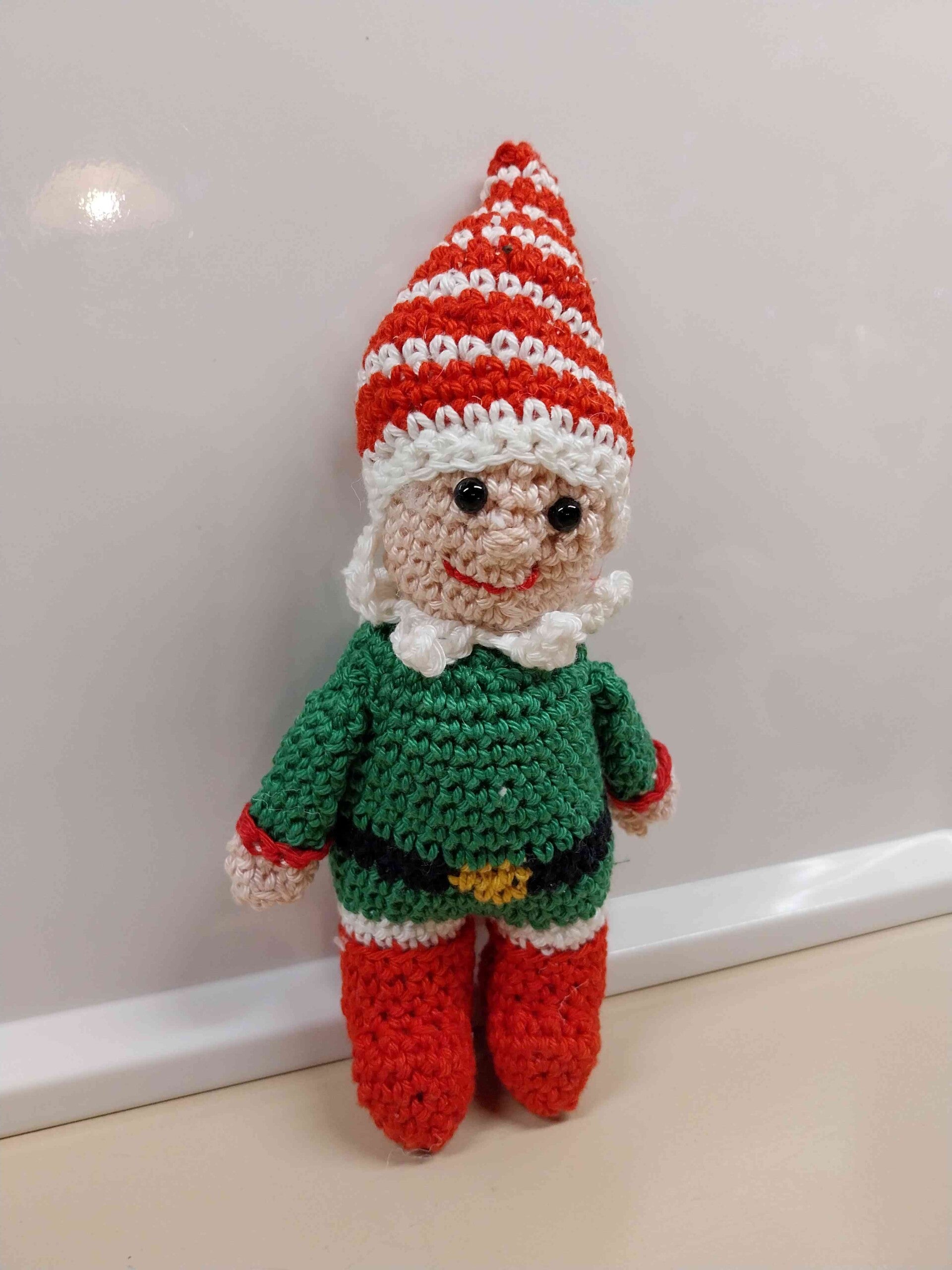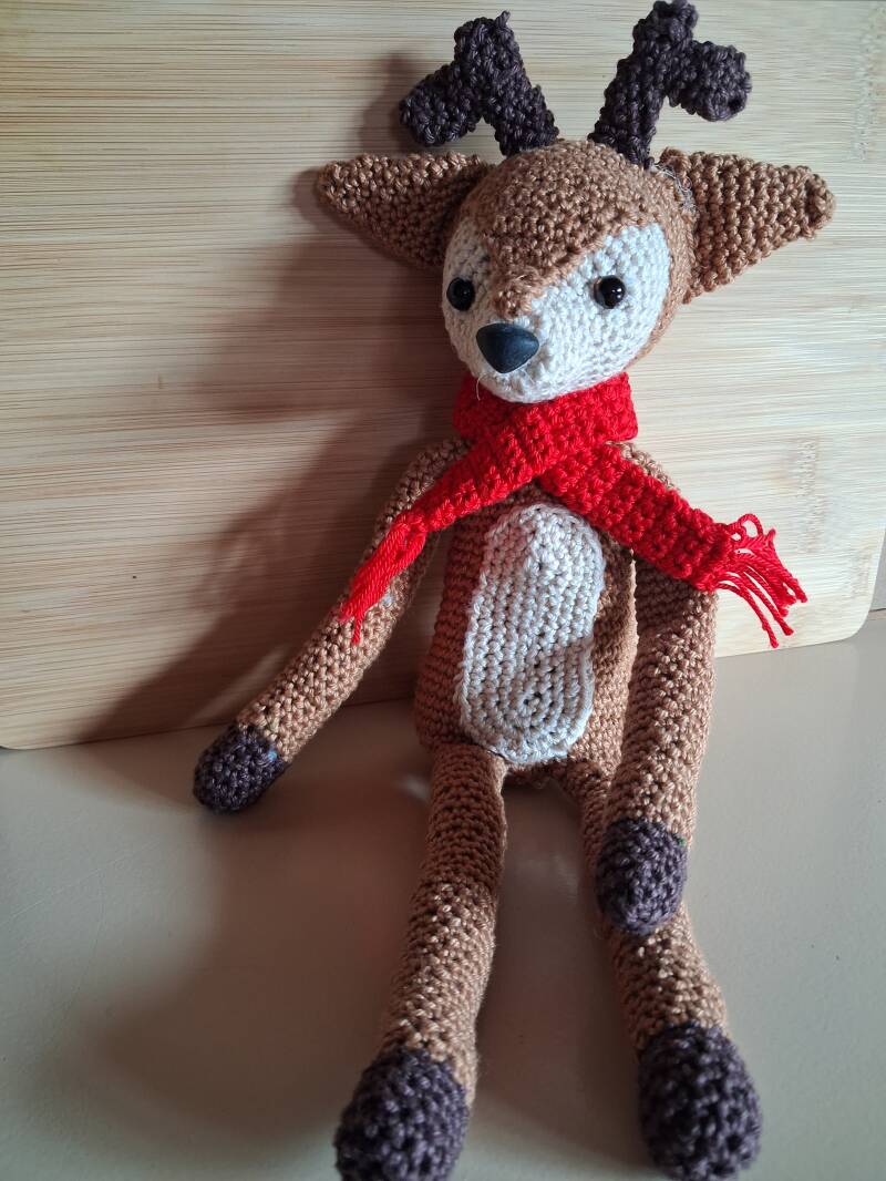 Kerst-tafereel in houten bakje met kerstboom, sneeuwman, hert en slede
